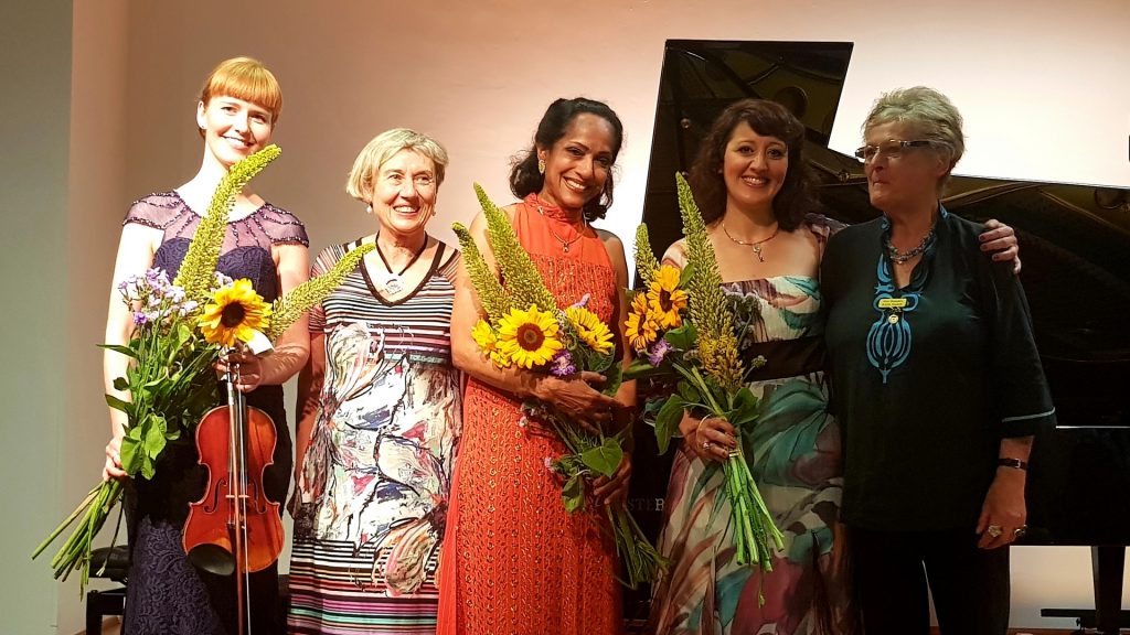 Frau Fernandes ist es zu verdanken, dass das Konzert überhaupt noch zustande kommen konnte, da die ursprünglich vorgesehene Gaia Trionfera sehr kurzfristig ihre Teilnahme krankheitsbedingt absagen musste und es Frau Fernandes praktisch im letzten Moment gelang, die hervorragende Violinistin Ieva Pranskuté aus Litauen für die Mitwirkung zu gewinnen. Nach einigen kleinen Programmänderungen und nur einer einzigen Probe gelang den beiden Künstlerinnen zusammen mit unserer Clubschwester, der aus Griechenland stammenden ausdrucksstarken Mezzosopranistin Elsa Giannoulidou, eine perfekte musikalische Darbietung, die vom Publikum mit lange anhaltendem Beifall honoriert wurde. Ein umfangreiches Buffet rundete den erfolgreichen Abend ab. Der Reinerlös des Konzertes kommt wie immer Jugend- und Sozialprojekten unseres Clubs zugute.